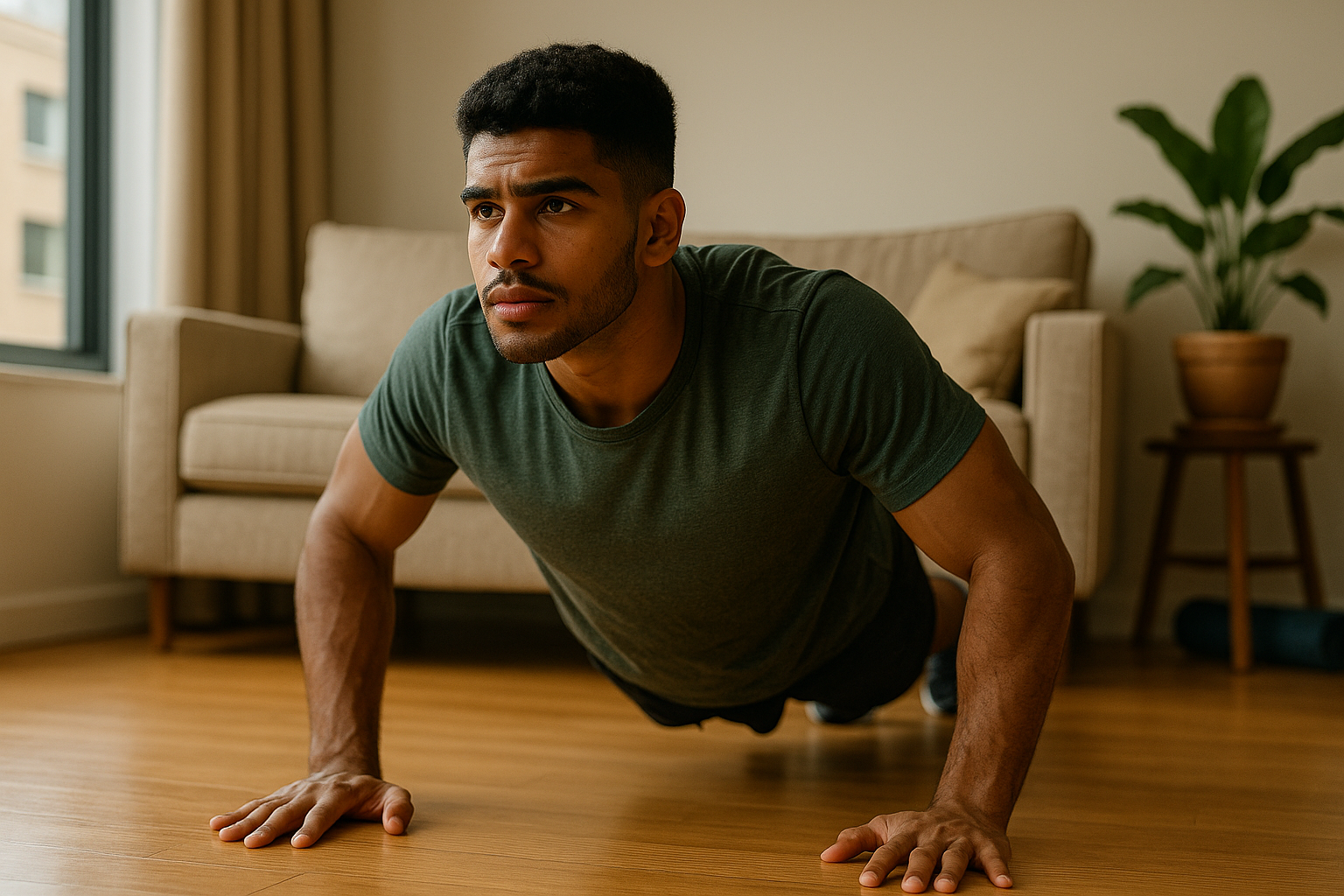 • Bodyweight training – Push-ups, squats, and planks build strength anywhere.